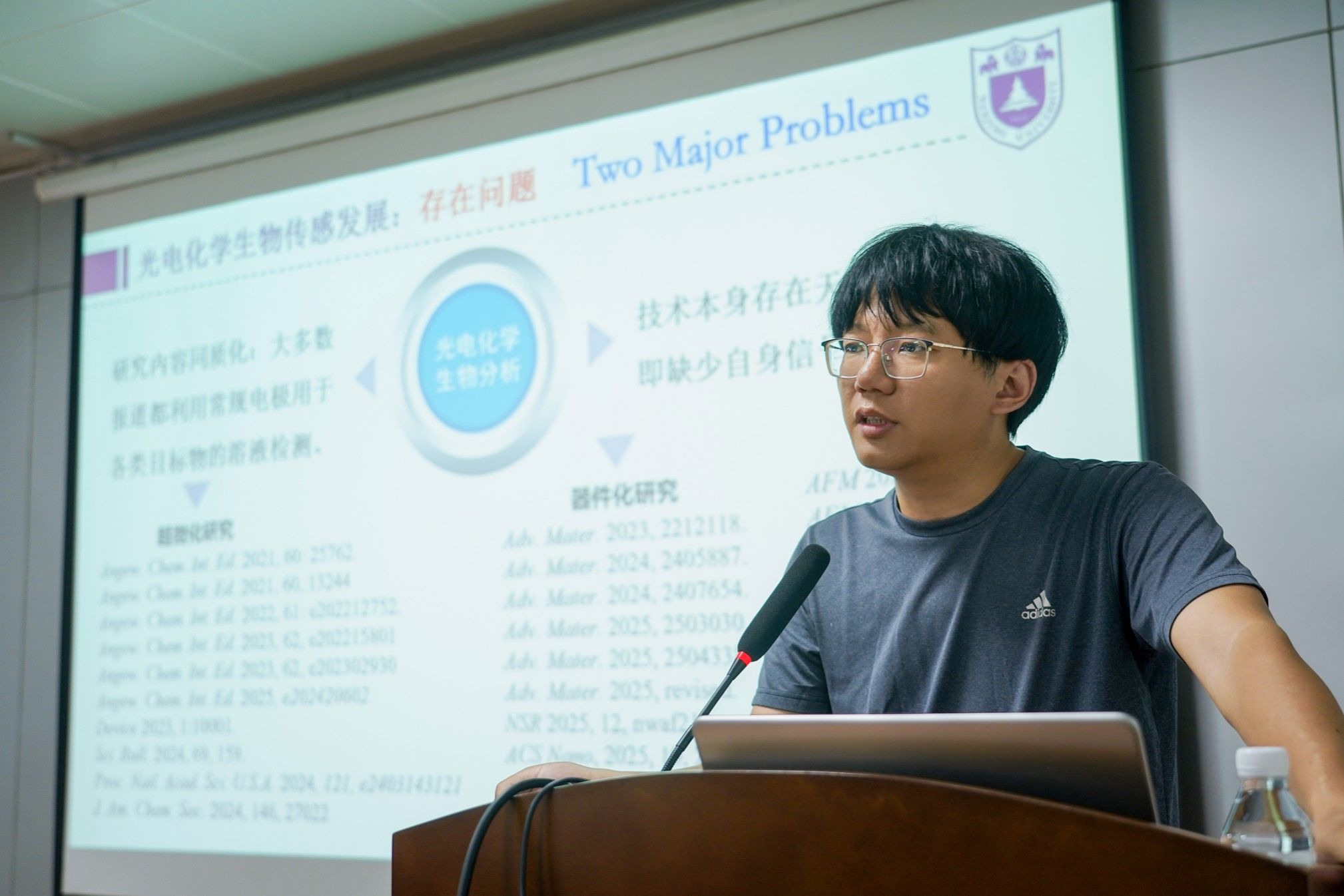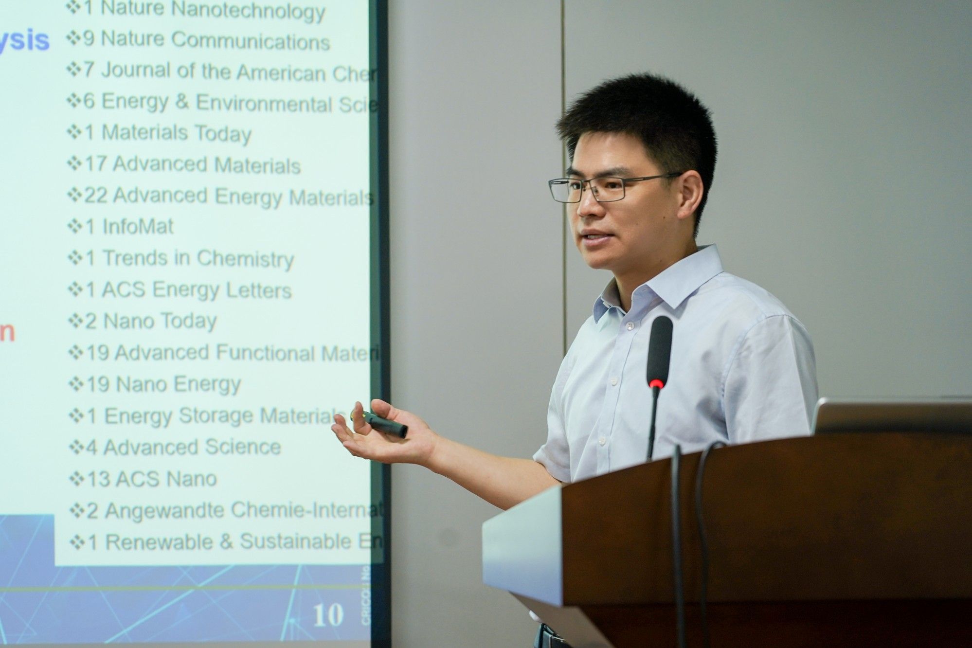 随后,南京大学赵伟伟教授、南京师范大学钱勇教授、天津理工大学张志明教授、中国科学院高能物理研究所王黎明研究员、香港城市大学左云鹏博士及化工与材料学院司晶晶博士、马敏智博士及赵丹丹博士等青年教师分别围绕有机光电化学晶体管、化学探针及生物应用、团簇和光敏剂耦合人工光合体系、纳米材料-生物界面、电催化还原氮氧化物及应用、纳米催化材料与钙钛矿太阳能电池等研讨会主题做研究报告。