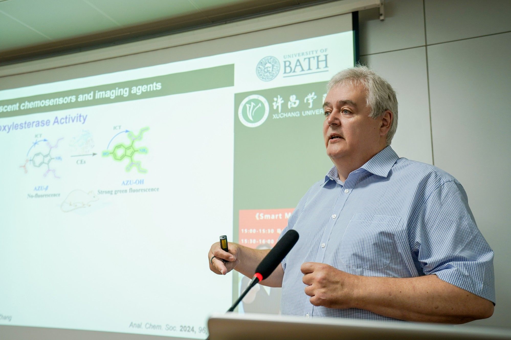 会上,加拿大工程院院士刘焕明教授、澳大利亚昆士兰科技大学陈志刚教授、英国巴斯大学Tony D. James教授、东华大学易涛教授、山西大学阴彩霞教授分别围绕零碳新能源科技、热电材料与器件、荧光化学传感器和成像剂、光激活荧光开关材料在生物检测、光催化及光治疗应用及染料分子设计与生物医药应用等会议主题做邀请报告。
