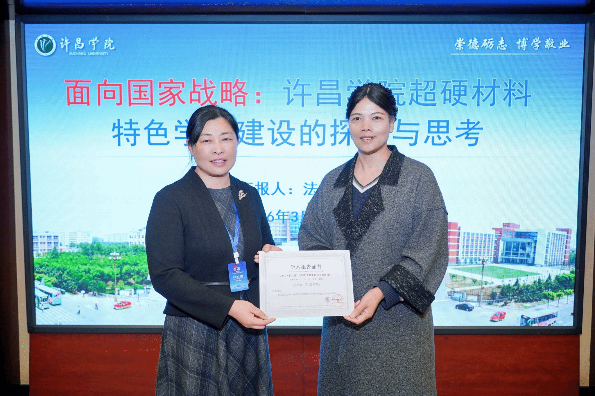 会议设置主会场特邀报告、四大分会场专题报告,内容丰富、层次多元。在第四分会场(材料学科建设交流会+院长论坛),许昌学院表面微纳米材料研究所副所长法文君教授以“面向国家战略:许昌学院超硬材料特色学科建设的探索与思路”为题,分享了我校超硬材料重点学科的发展概括、研究方向、学科特色以及代表性成果等。葛素香教授以“BiOCl基催化剂调控活性氧物种选择性降解苯系物研究”为题,分享了课题组近期在苯系物降解方面的系列研究成果。