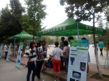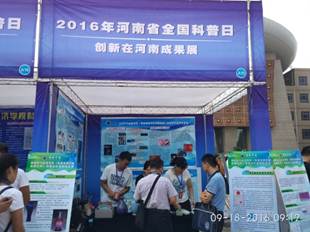 1). 参加河南省科协组织的河南省“全国科普日”郑州主场活动。9月18日,法文君博士带领我校“NANO CLUB”科普社骨干成员参加了在郑州科技馆举办的河南省“全国科普日”郑州主场活动,展出了我校特色的纳米钧瓷系列产品,获得河南省科技进步奖二等奖的纳米结构类酶催化复合催化剂等产品,受到了广泛关注,被中国科学报报道。