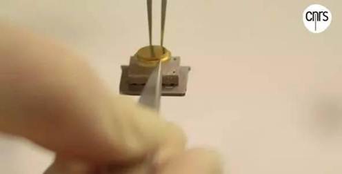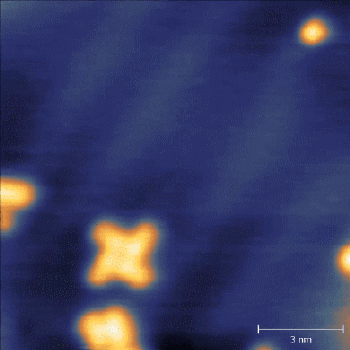 谁给赛车加油呢?动力来自电子显微镜尖端的探针,他们需要给探针上面加上一点电压,产生微弱的电流,刺激分子车往前移动。