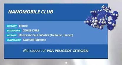 这个分子车飙车大赛于2016年10月14-15日举行,比赛的主办方是法国国家科学研究中心(CNRS),赛场位于法国图卢兹的材料和结构研究中心(Centre d'élaboration de matériaux et d'études structurales,缩写CEMES)。比赛内容非常简单——来自世界9个国家的实验室组成了6支队伍,自己设计自己的分子车,然后在一个纯金的跑道上(是金,不是金色),在零下270多度的真空中,让分子车往前开,在指定时间内谁开得最远,谁就获胜了。