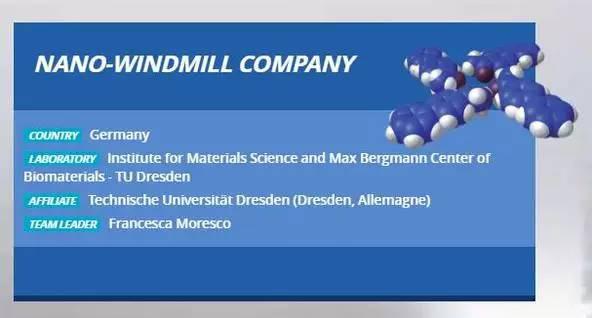 这个德国小哥叫Frank Eisenhut,队伍来自德累斯顿科技大学,他们拿出了最不像车的车——其实看起来更像是一个飞镖——名字是“风车”(Windmill),四个ABP分子由氢键连起来。这项赛事里,所有的车,都必须不大于1000个原子,而他们这个小玩意算是倒数第二迷你的。电荷刺激风车的臂,然后整个车会朝着那个臂的方向移动。